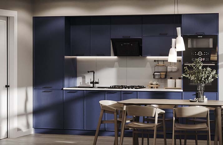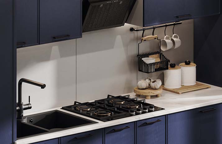 i zlatnog zanatskog hrasta. Prednji dijelovi kuhinje izrađeni su od MDF-a u bojama bijela supermat,