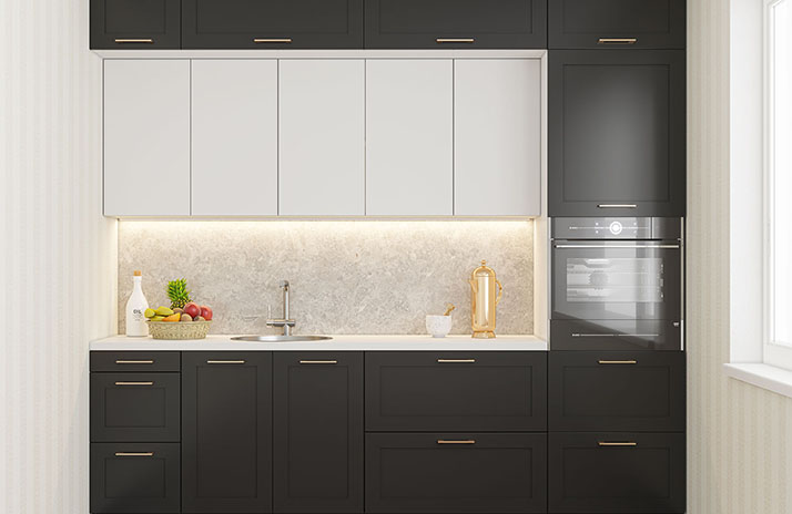 Moguće je opremiti donje ormare s običnom nogom boje aluminija umjesto standardnog postolja.
