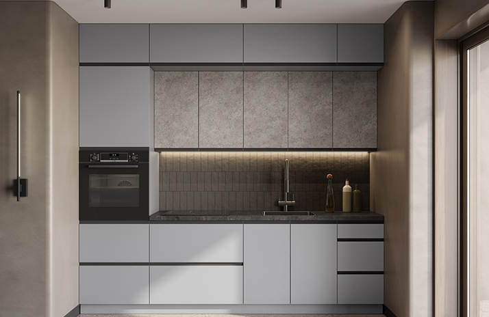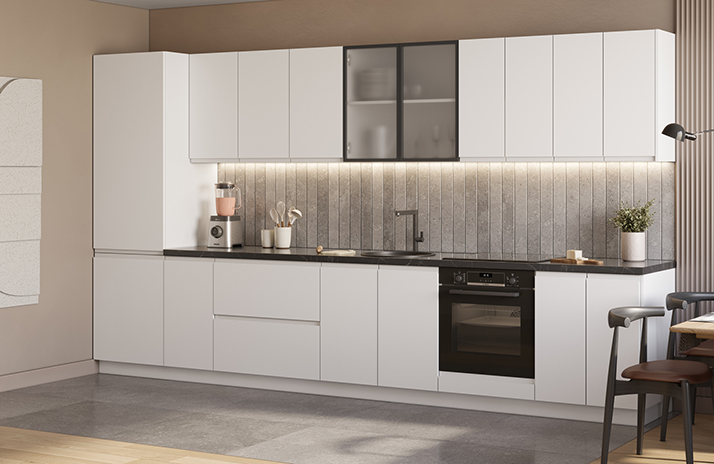 Moguće je opremiti donje ormare regulirajućom nogom u boji aluminija umjesto standardnog postolja.