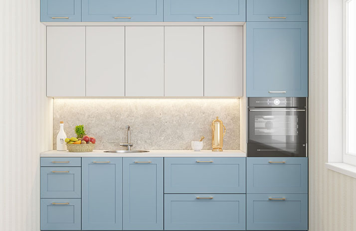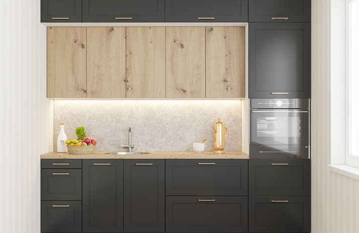 Moguće je opremiti donje ormare s običnom nogom boje aluminija umjesto standardnog postolja.