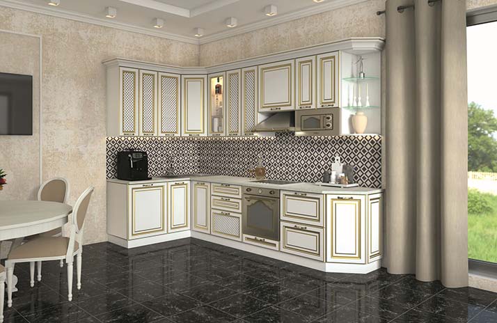 Bočne stranice su izrađene u bijeloj boji kestena (iverica). Prednji dijelovi kuhinje izrađeni su od MDF-a u bojama
