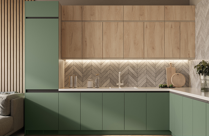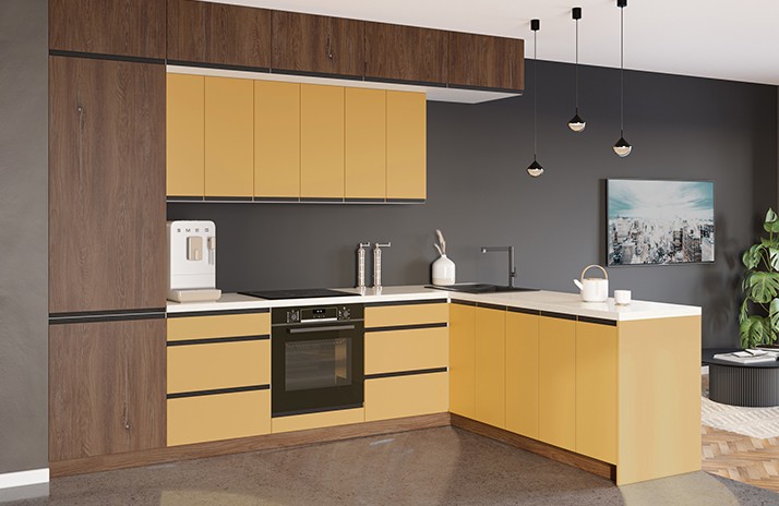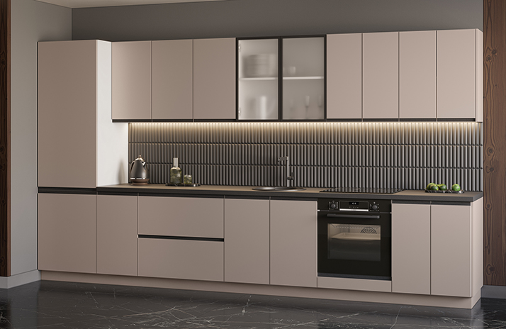 Moguće je opremiti donje ormare regulirajućom nogom u boji aluminija umjesto standardnog postolja.