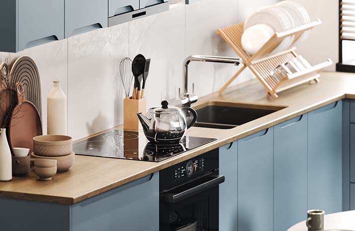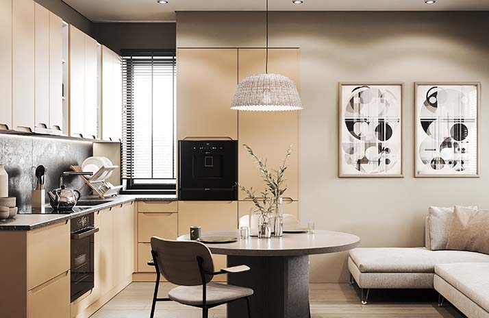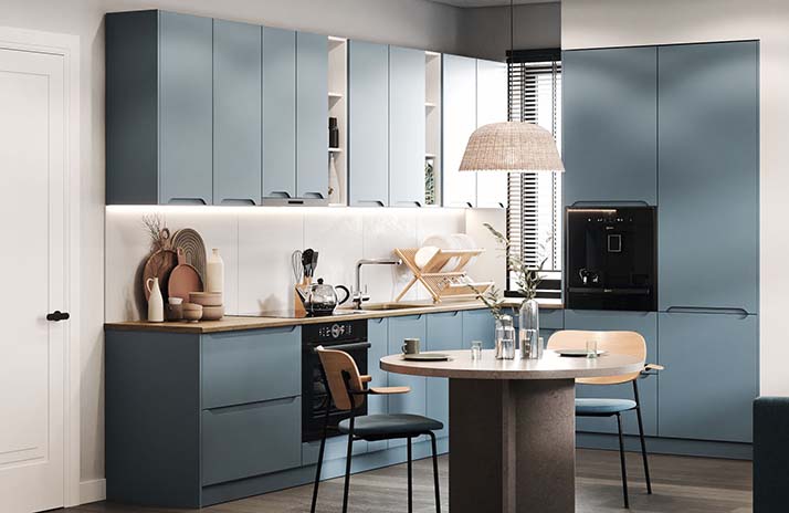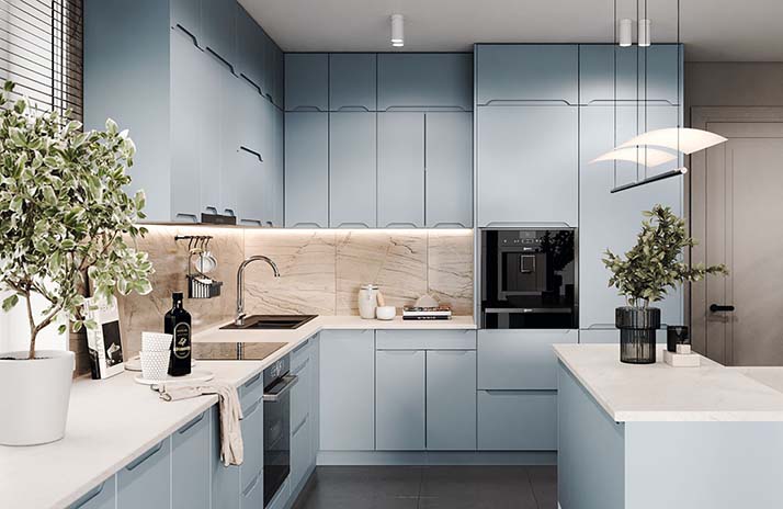 Prednji dijelovi kuhinje izrađeni su od MDF-a u boji bijele svile, sladoleda, slonovače, moche, latte, sivi baršua,
